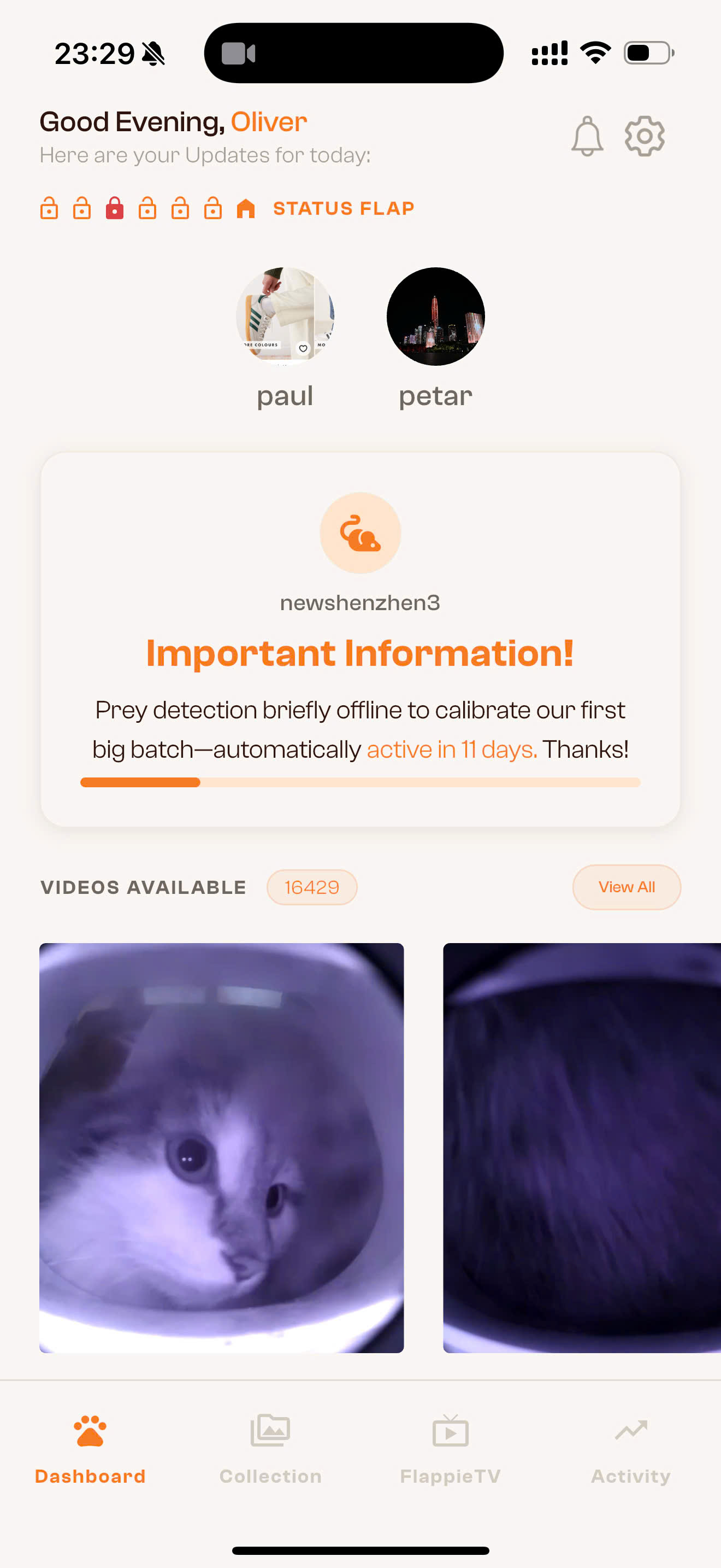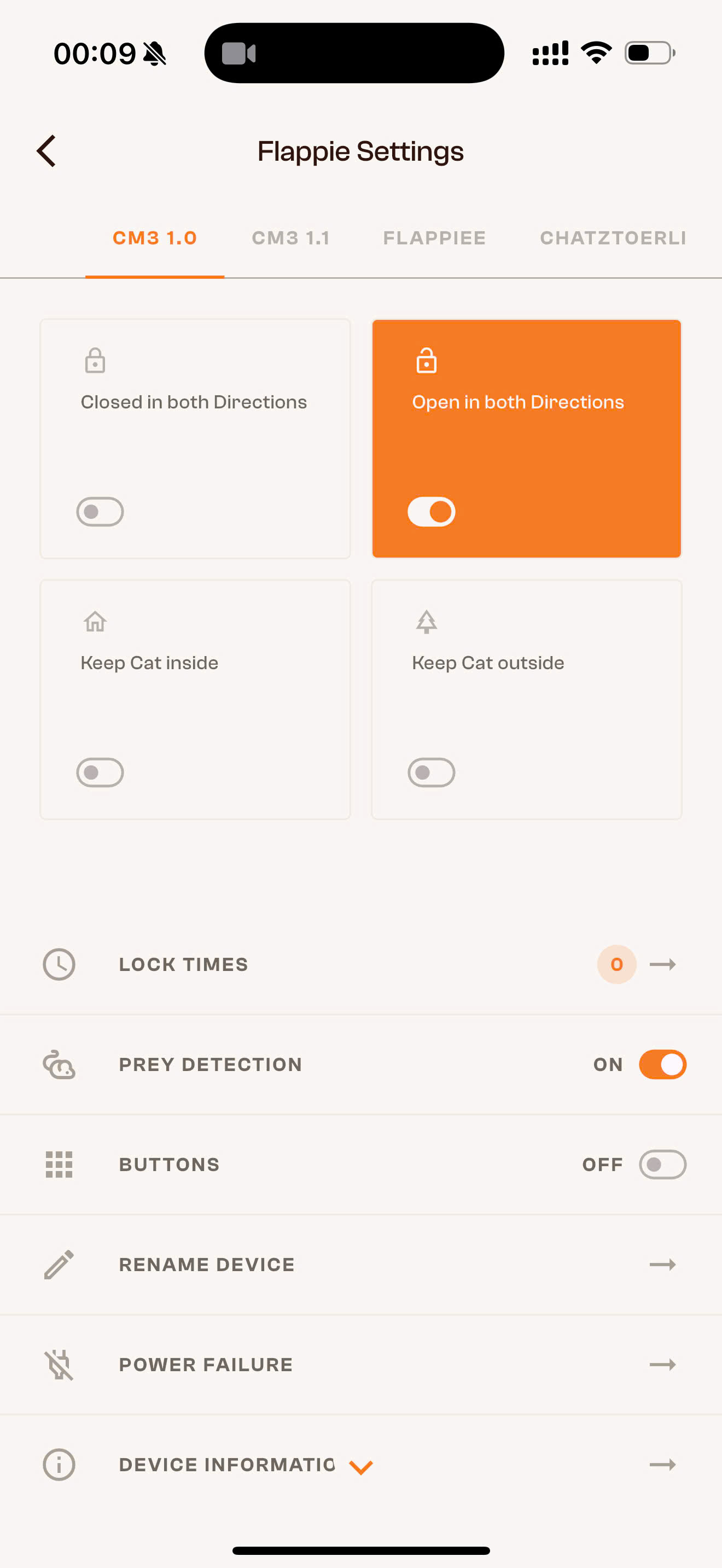 The Flappie app lets you control exactly when your cat can come in or go out. There are two ways: quick changes directly from the dashboard, or automatic schedules that repeat.